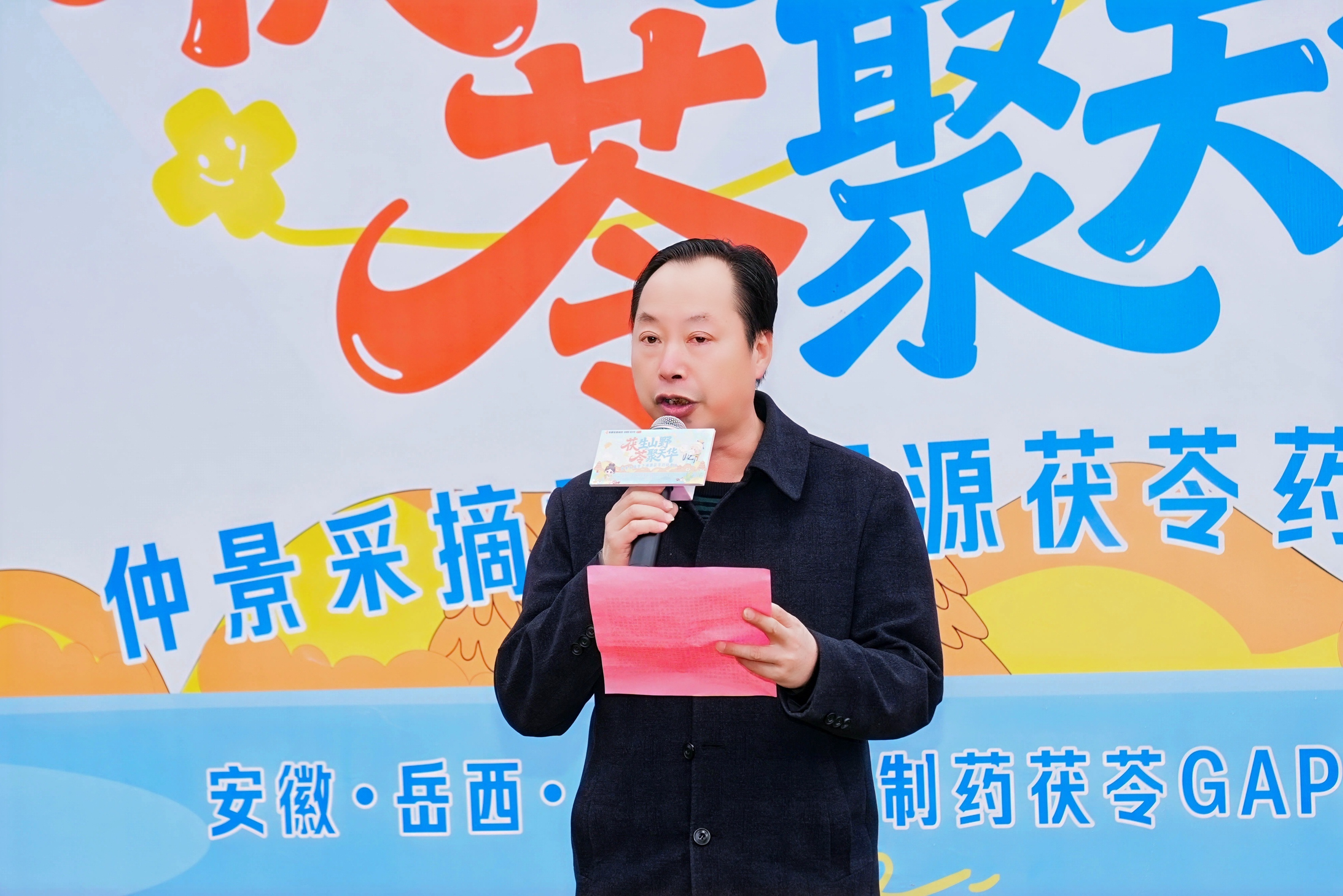 岳西县市场监督管理局局长朱文海首先致辞,他以“土里生白玉,地下长黄金”这句当地俗语开篇,道出茯苓在岳西人心中的分量。“作为国家地理标志证明商标产品,‘岳西茯苓’不仅是大自然赐予的生态珍宝,更是乡亲们增收致富的‘金疙瘩’。”他透露,目前全县茯苓产业年加工鲜茯苓达4.5万吨,产出成品2.37万吨,加工金额突破7.2亿元,尤其在和平乡,通过与仲景宛西制药共建产业基地,探索出“企业+基地+合作社+农户”的共赢模式,为全县茯苓产业发展提供了宝贵经验。
