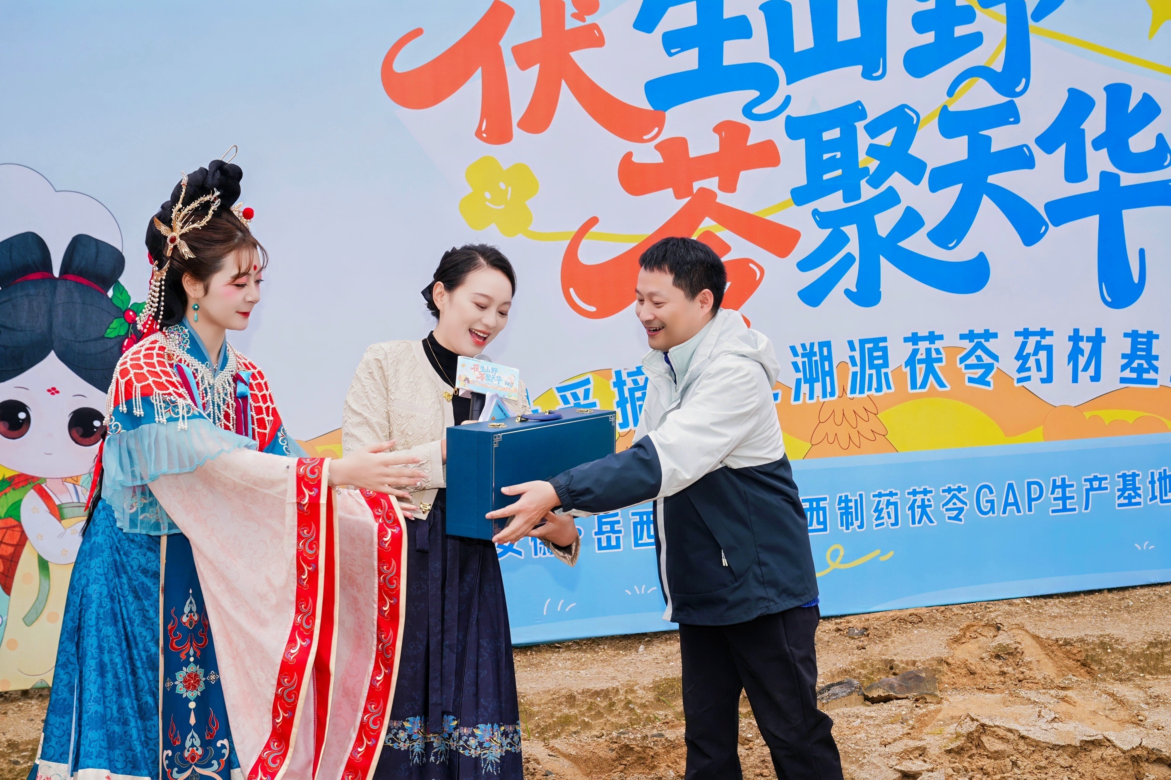 在他身后,与会嘉宾一同躬身加入“采茯比拼”,有人挖到第一颗茯苓时举着茯苓欢呼,有人围着仲景药农追问“三埋三露”种植法的细节,这门自清代“松腴培养术”一脉相承的古法,如今仍在基地延续。